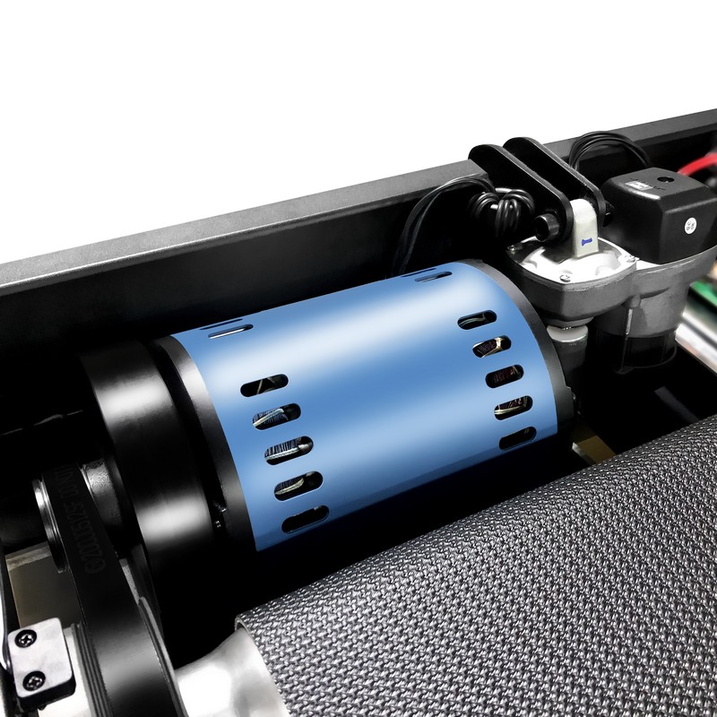 Конструкция:надежность обеспечивают тяжелая высоконадежная рама, профессиональная вощеная дека 25 мм, ортопедическое коммерческое беговое полотно усиленного плетений с высокой износостойкостью и антистатичным нижним слоем, мощный механизм изменения угла наклона и профессиональный двигатель подъема. Роллеры диаметром 60/60 мм обеспечивают надежность подвижного механизма, увеличивают ресурс эксплуатации основного двигателя, надежное сцепление с беговым полотном и снижение шума работы. Просторная беговая зона 560 х 1550 мм обеспечивает естественную свободу движения, как при интенсивных тренировках, так и комфорт для начинающих пользователей. Стильный алюминиевый каркас рамы надолго сохранит хороший внешний вид тренажера, стоек к видимым повреждениям, царапинам, сколам, которые неизбежны при большом потоке посетителей.