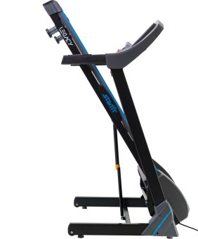 Увеличенная поверхность полотна повышает комфорт тренировок. Электронное управление наклоном бегового полотна позволят легко менять угол наклона дорожки, не применяя усилий. Усовершенствованный дисплей нового поколения с подсветкой удобен в использовании. Система складывания с гидравлическим поршнем делает подготовку тренажера к работе максимально простой.