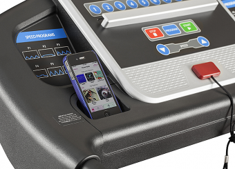 Скорость от 1 до 16 км/ч позволяет пользователю в любой физической форме бросить себе вызов. Для быстрого доступа к выбору предустановленной скорости на консоли установлены 9 кнопок. По бокам наклеены стикеры с графиками всех программ для удобства выбора тренировки.