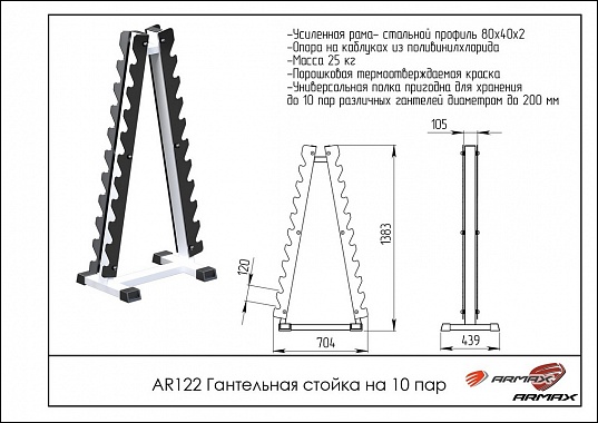 Гантельная стойка ARMS на 10 пар AR122