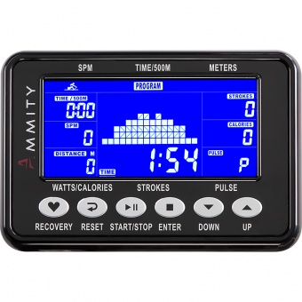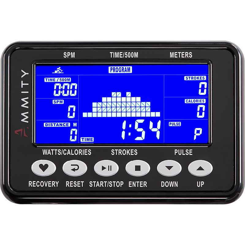 Аэромагнитный гребной тренажер Ammity отличается инновационной системой сопротивления AMC™, корректирующей нагрузку индивидуально характеру движения и обеспечивающей плавные и естественные гребки, что улучшает не только физическую форму, но и развивает точность координации движений и чувство баланса тела для повышения спортивных показателей и выносливости спортсмена. Надежная рама и алюминиевый трек создают высокую надежность конструкции, дополнены легкой системой складывания для компактного хранения и перемещения. Качественная биомеханика обеспечивает высокую надежность и эффективность тренажера. Использование коммерческих комплектующих и подшипниковых соединений ПРУ, трек и высокотехнологичная система привода PlastPro™ допускают интенсивные тренировки пользователям до 160 кг. Высококлассная эргономика конструкции рассчитана на тренировки пользователей ростом от 1,5 до 2,15 м. Высококонтрастный синий LCD дисплей 5” и удобная клавиатура управления позволяют легко выбрать необходимые параметры тренировки. Программный пакет включает разносторонние тренировки на повышение выносливости, координации и баланса, соревнования с виртуальным соперником для улучшения техники, поддержания физической формы и здоровья.