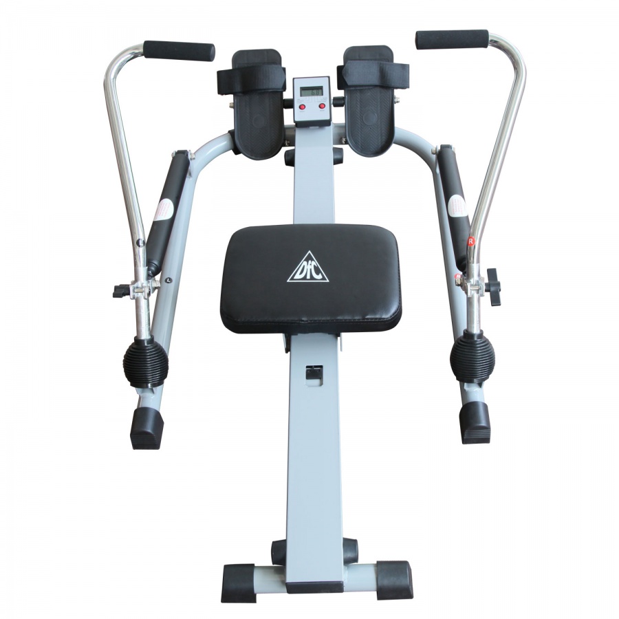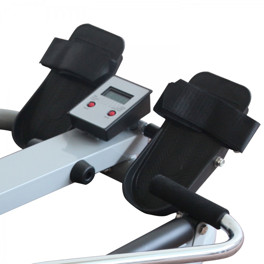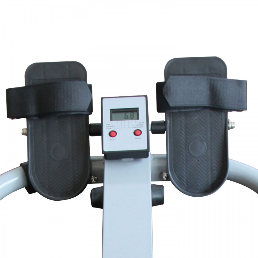 Гребля является очень эффективным комплексом упражнений, потому что в ходе его выполнения одновременно тренируются все основные группы мышц как верхней, так и нижней частей тела, а также сердечно-сосудистая система. Тренажер для домашнего использования. Система нагружения - с помощью 2 гидравлических цилиндров. Механическая регулировка нагрузки на рукоятках тренажера. Консоль с LCD-экраном компьютера (питание от батарейки тип АА). Показания компьютера: скан, время, расстояние, количество гребков, общее количество гребков, калории.