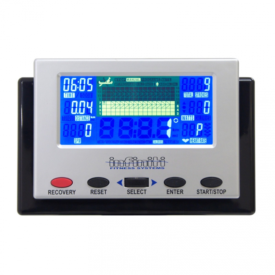Гребля является очень эффективным комплексом упражнений, потому что в ходе его выполнения одновременно тренируются все основные группы мышц как верхней, так и нижней частей тела, а также сердечно-сосудистая система. Гребной тренажер Infiniti R70i обладает массой преимуществ. Складная алюминиевая рама (рельс) и транспортировочные ролики позволяют без особых усилий привести тренажёр в положение хранения. Присутствует удобно расположенный дисплей, с корректируемым углом установки. Сиденье эргономичное, удобное. Система роликов обеспечивает плавный бесшумный ход во время тренировки. Диапазон движения сиденья достаточно большой для занимающегося любого роста. Встроенный телеметрический Polar-приёмник позволяет наблюдать за изменением пульса, если Вы используете нагрудный Polar-датчик (в комплект не входит, опция).