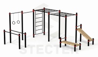 Комплекс из сдвоенных брусьев, турников, шведской стенки, двух рукоходов и наклонной лавки для пресс