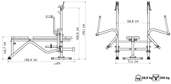 Количество Нет в наличии Торговая марка Marbo Sport Максимальный вес пользователя (кг) 250 Назначение (класс) Домашнее Вес нетто (кг) 28.8 Гарантийный срок (мес) 12 Длина, см 139 Вес брутто общий (кг) 30.5 Количество упаковок (шт) 1 Вес упаковки №1 (кг) 30.5 Ширина (см) 148 Высота (см) 119 -
